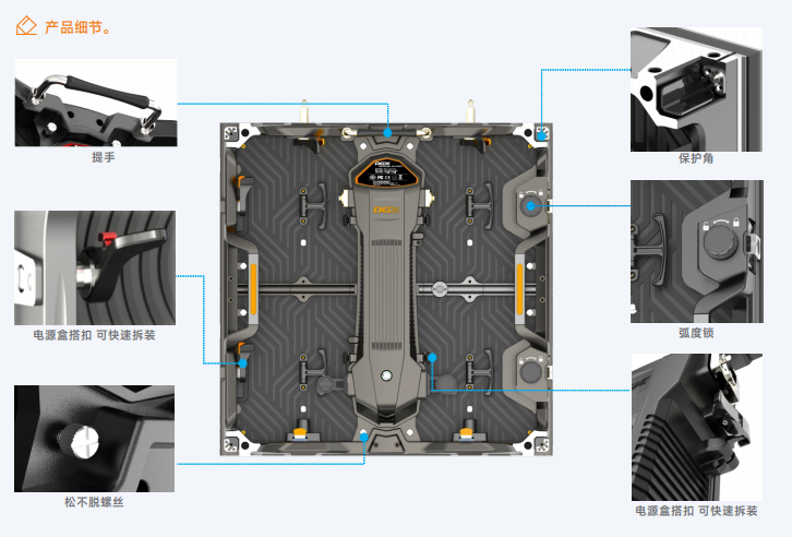 支持前后維護:顯示模塊固采用螺絲和磁吸共存的方式,安裝維護更加安全、快捷;